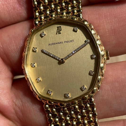 Audemars Piguet Octagonal Mechanical 18k Yellow Gold Bracelet Watch w/ Original Diamond-Set Dial & Hands