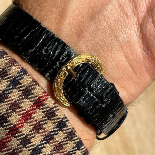 Bueche-Girod 18k Gold Large Oval Bark-Finish Watch w/ Lapis Lazuli Dial (Possible Roy King collaboration design)