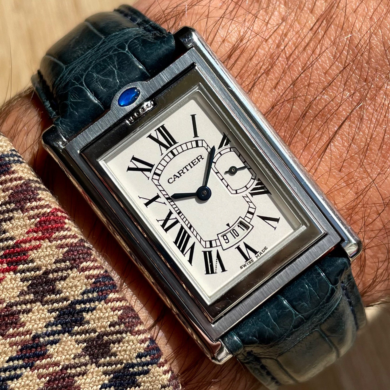 Cartier first introduced the Tank Basculante in 1932, shortly after the Jaeger-LeCoultre Reverso, at a time when distinguished gentleman needed a watch that could be protected during activities like playing polo. The Basculante features a reversing case mechanism whilst conceals and protects the dial, similar to the JLC Reverso. Overall these are elegant, classic watches for both men and women and an example of an iconic Cartier model that can be worn everyday if desired.