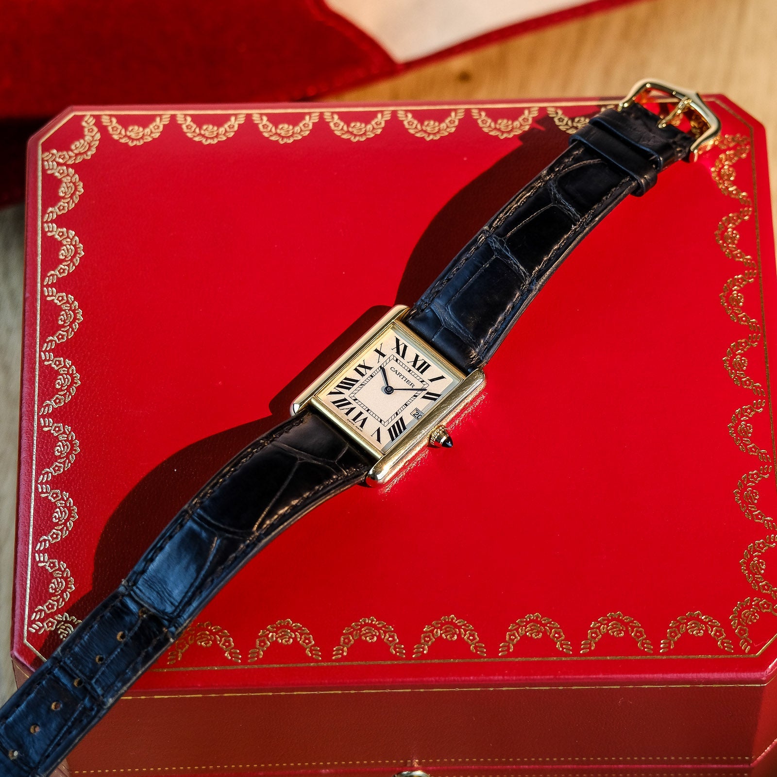 Alex's Comments: A perfect everyday Tank for the modern day, retaining all its quintessential Tank DNA like classic dial with black Roman numerals, blued steel hands, cabochon sapphire crown and the like, whilst also appealing to more contemporary sizing tastes and featuring a date window.