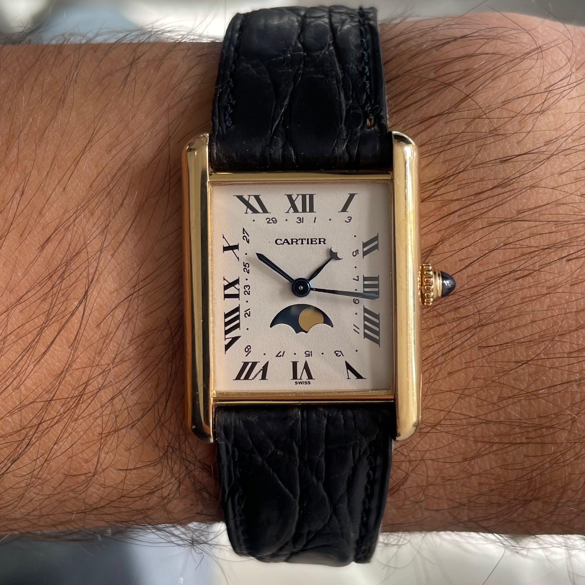 Cartier Tank Louis Phase de Lune 18k Gold Calendar Moonphase 1890 w/ Original Box & Papers Set