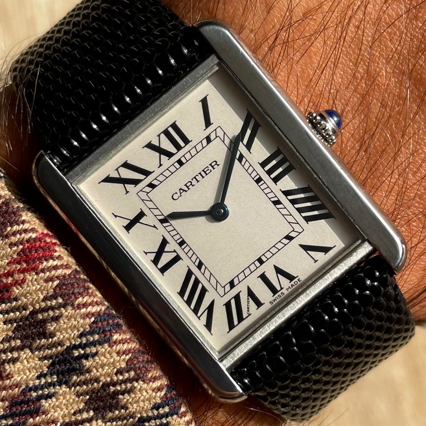 The Cartier Tank Solo was introduced in 2004, aimed at offering an affordable and accessible version of the classic Tank Louis (only available in precious metals). With that in mind, the Solo is generally made from steel and features a quartz movement. The Solo retains many of the Cartier Tank signatures, like the classic Roman numeral dial, cabochon sapphire crown, and blued steel hands. They are sized suitably for both men and women, and can be worn everyday.