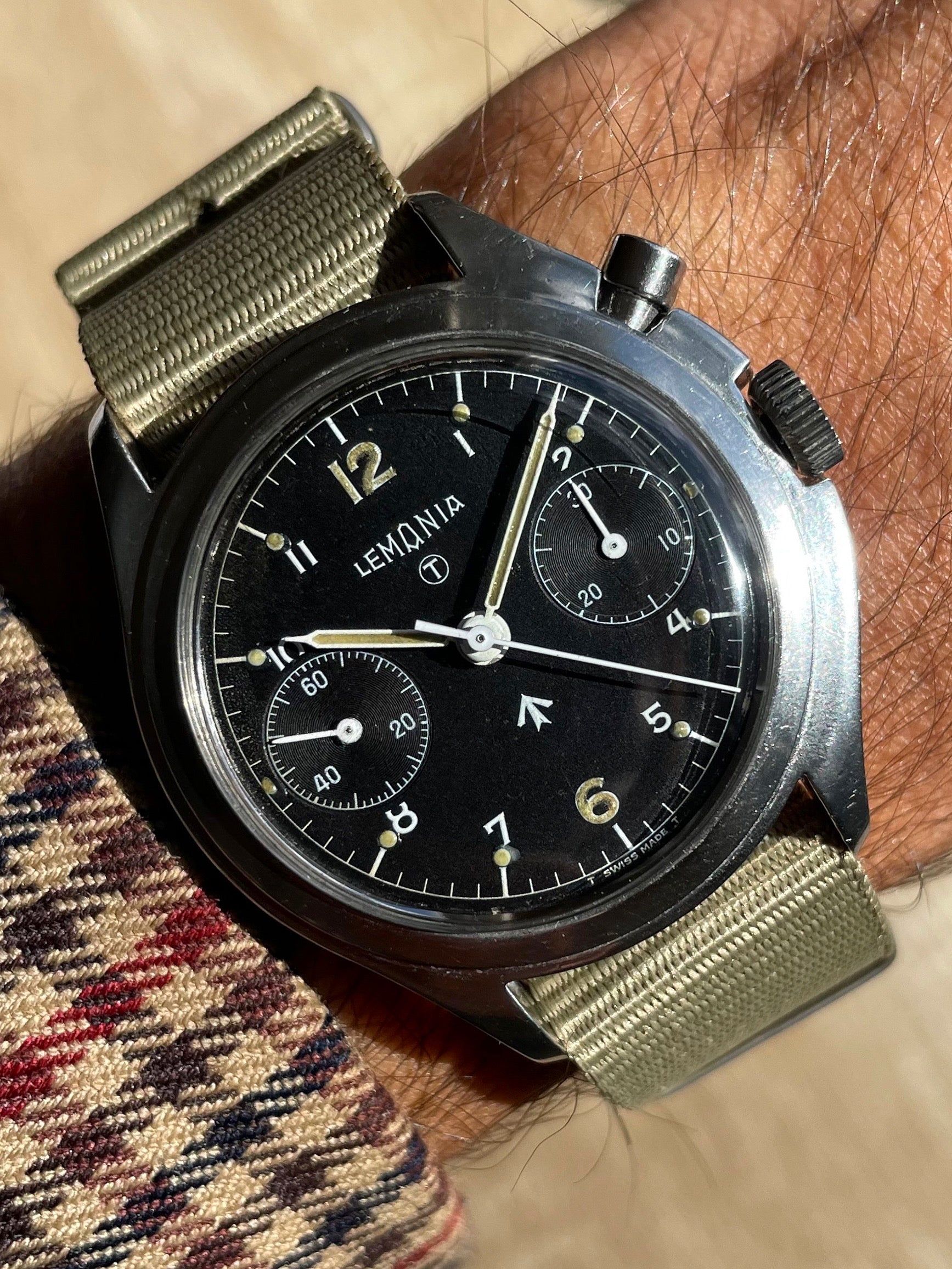 Lemania "Asymmetric" RAF British Military Issued Single Pusher Chronograph 1965