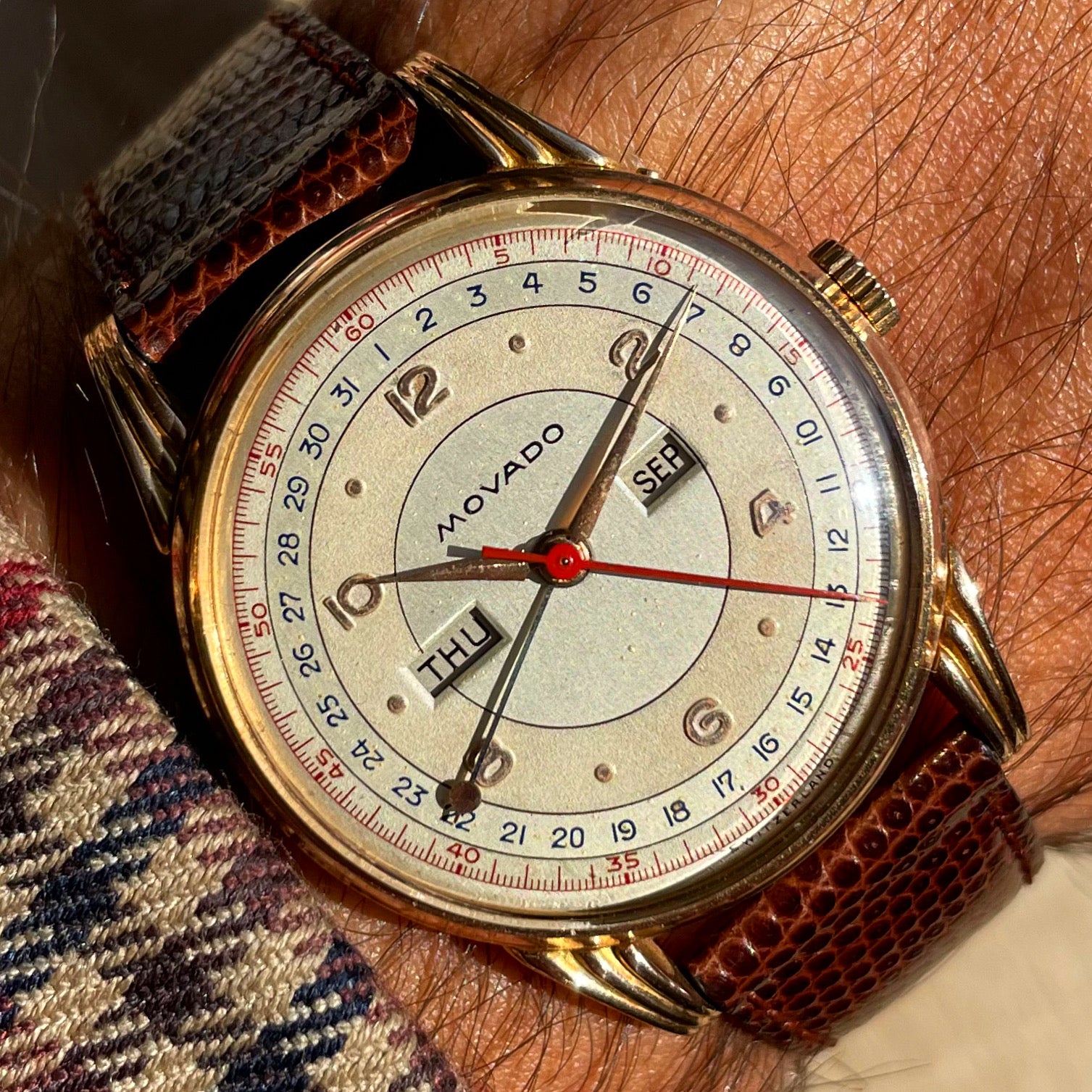 Movado "Calendograf" Triple Calendar in 18k Pink Gold w/ Original Two Tone Dial