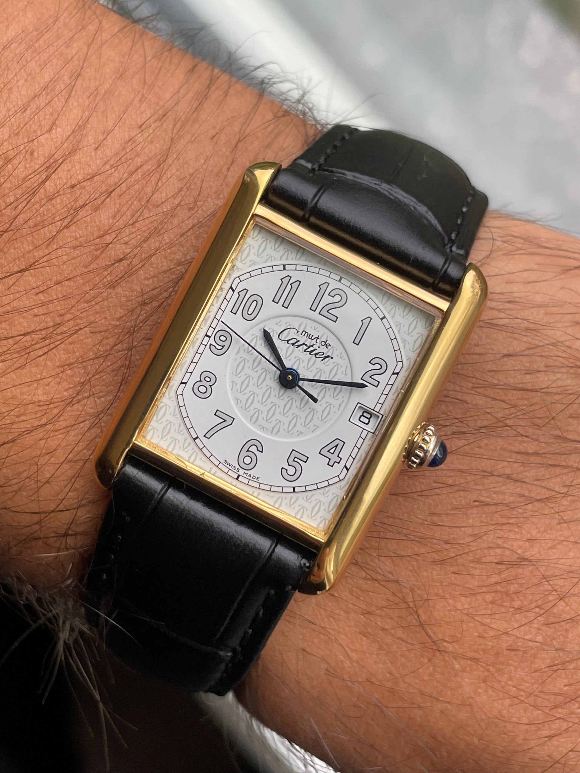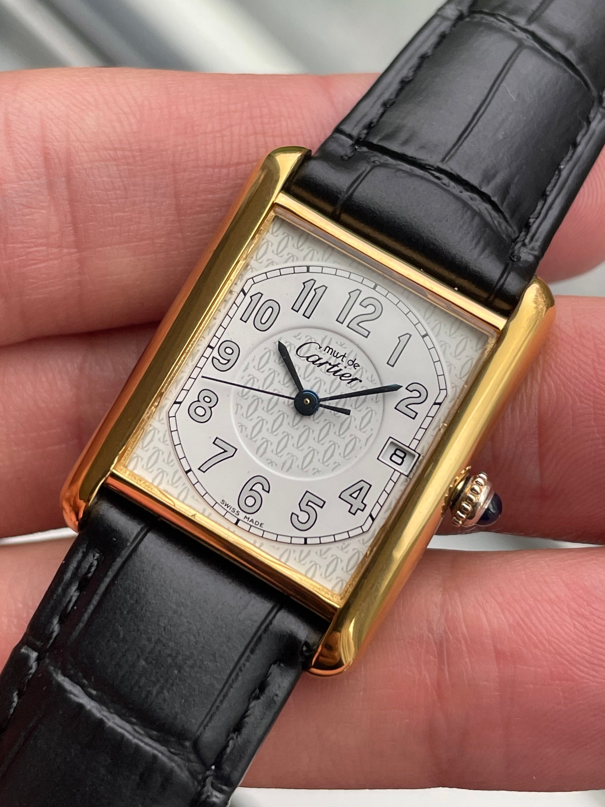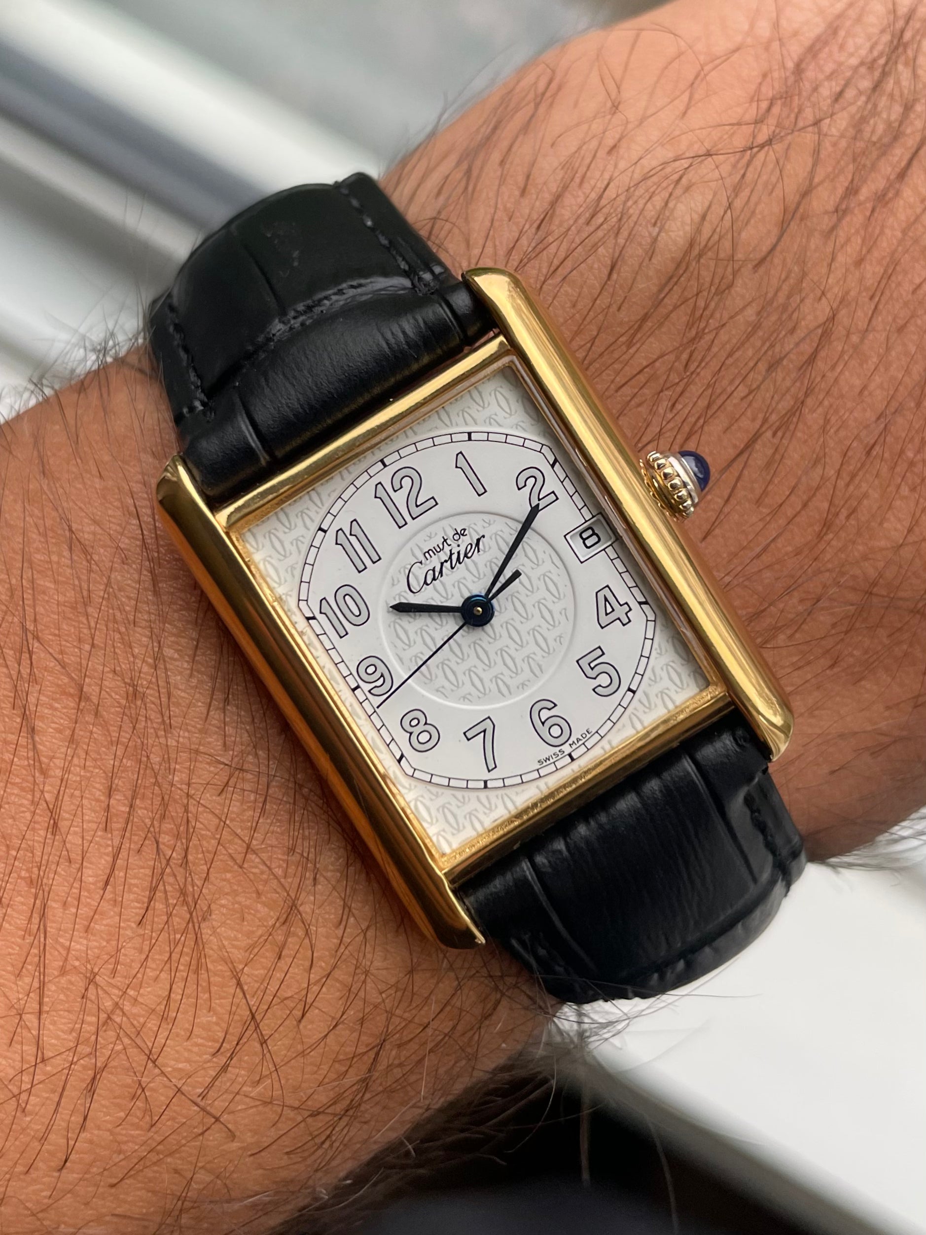 Alex's Comments: Must de Cartier Tanks are a staple here at ASV and for good reason, being a great entry point into the world of vintage Cartier and one of history's most iconic watch designs. At 25.5mm by 33.5mm, the reference 2413 is a great option for those looking for a Must Tank, but in a larger size. This example is in immaculate condition and is ready to strap to the wrist and enjoy.