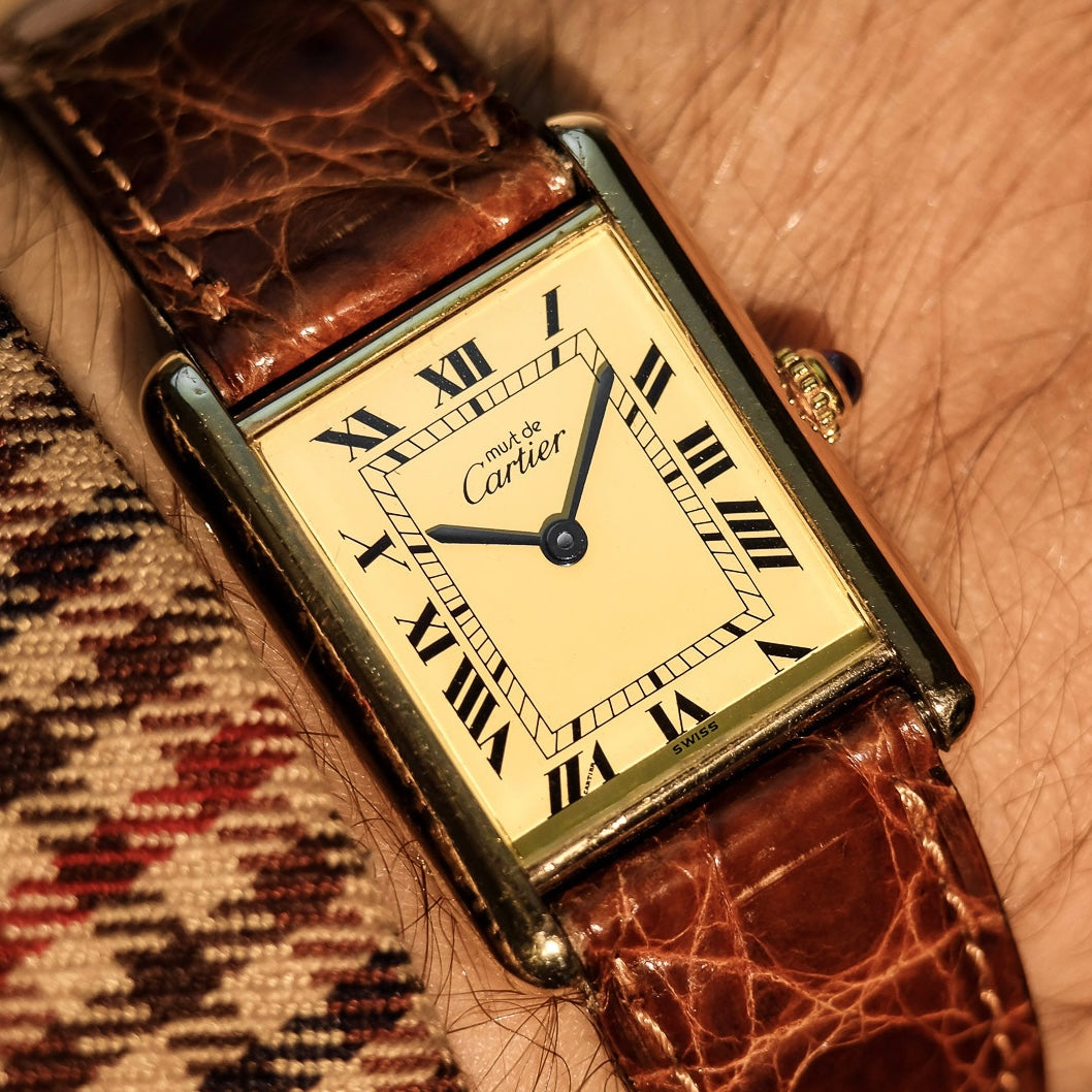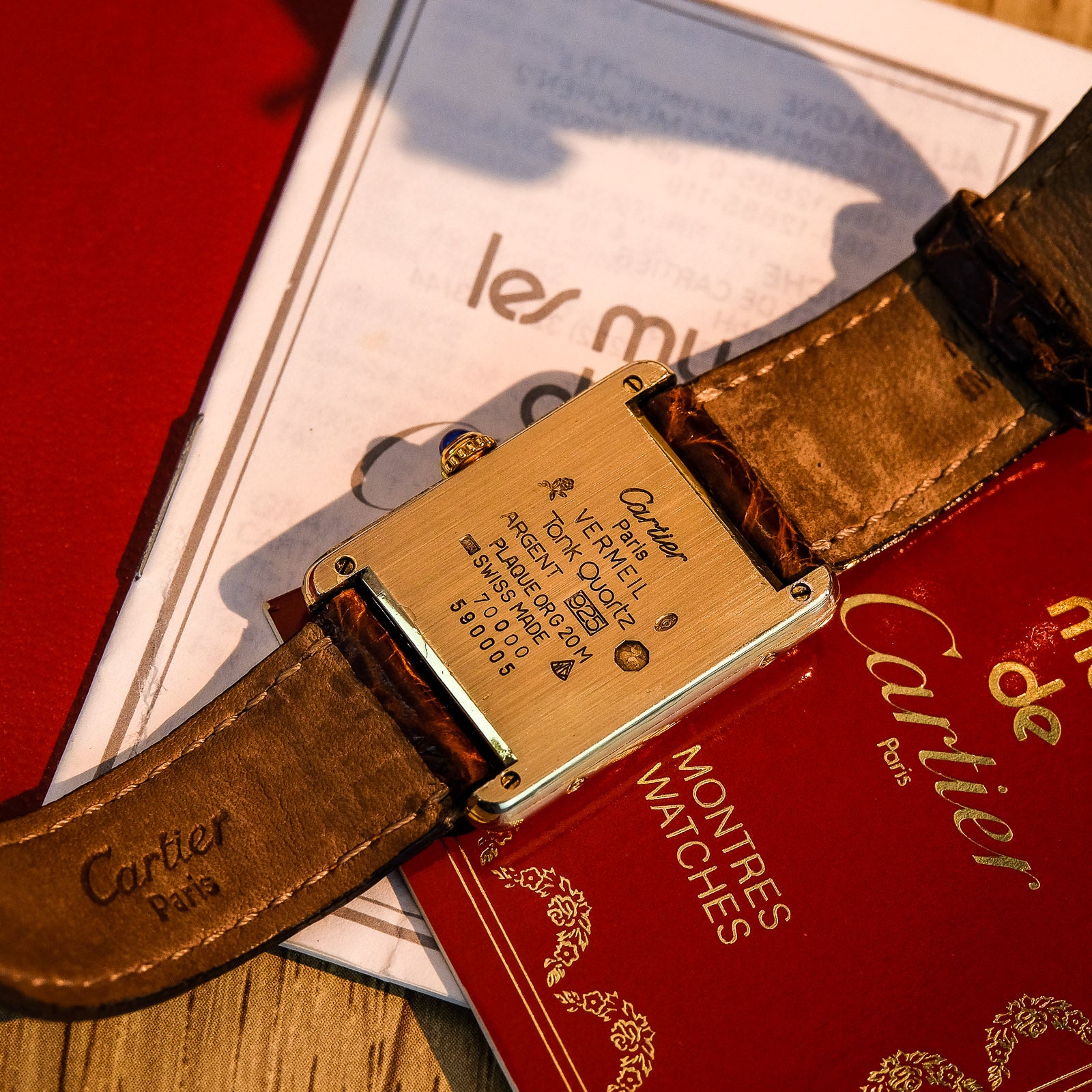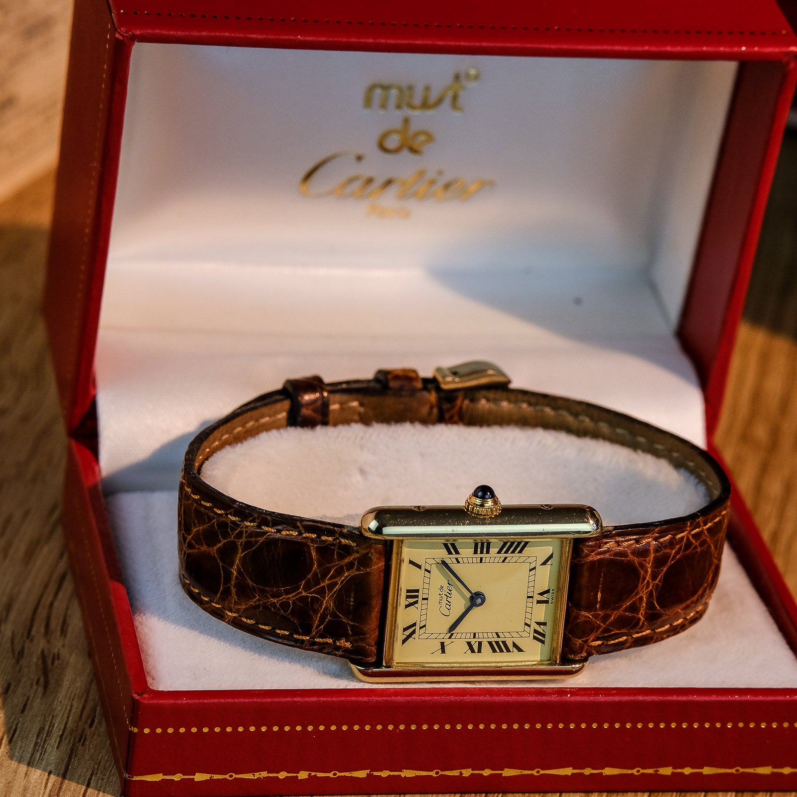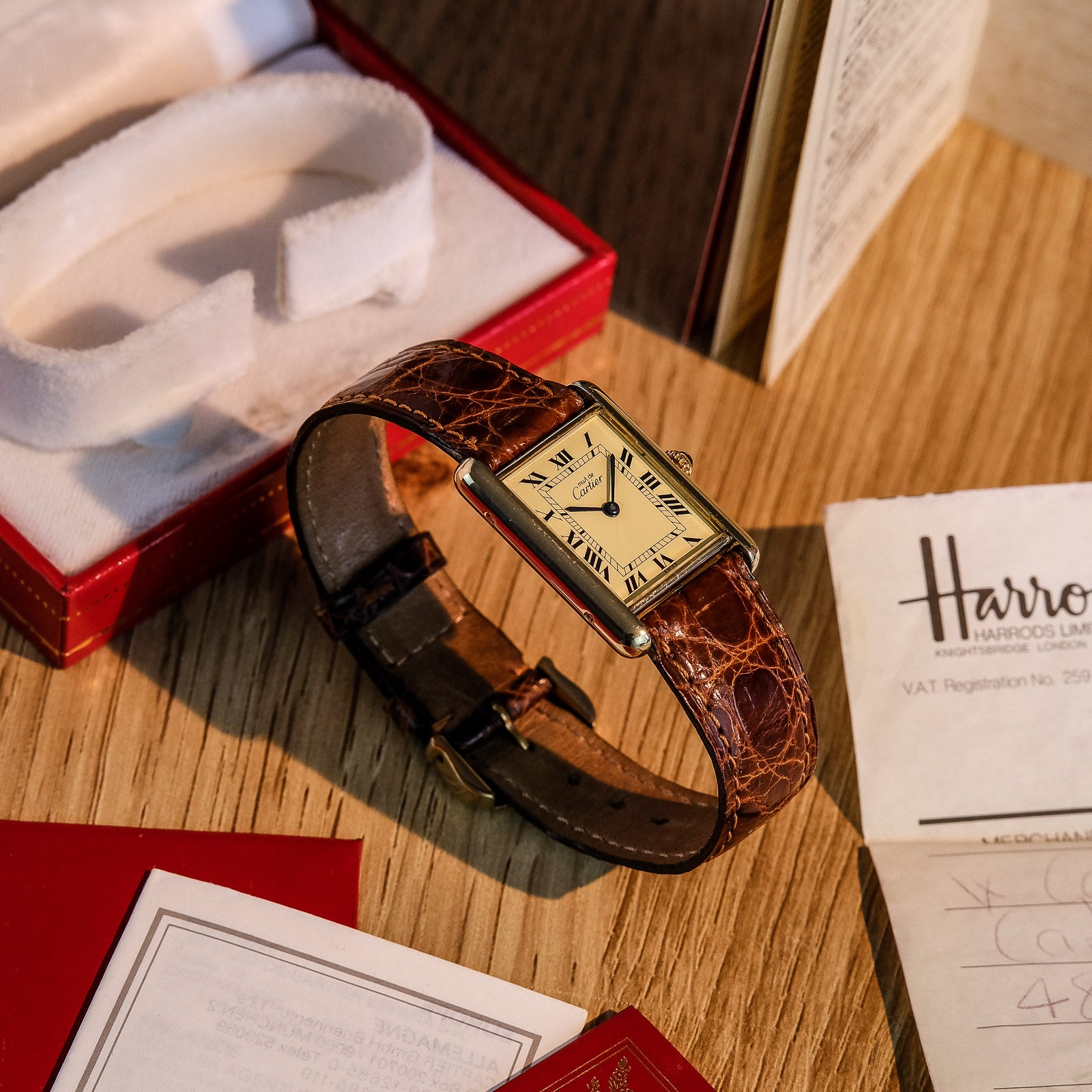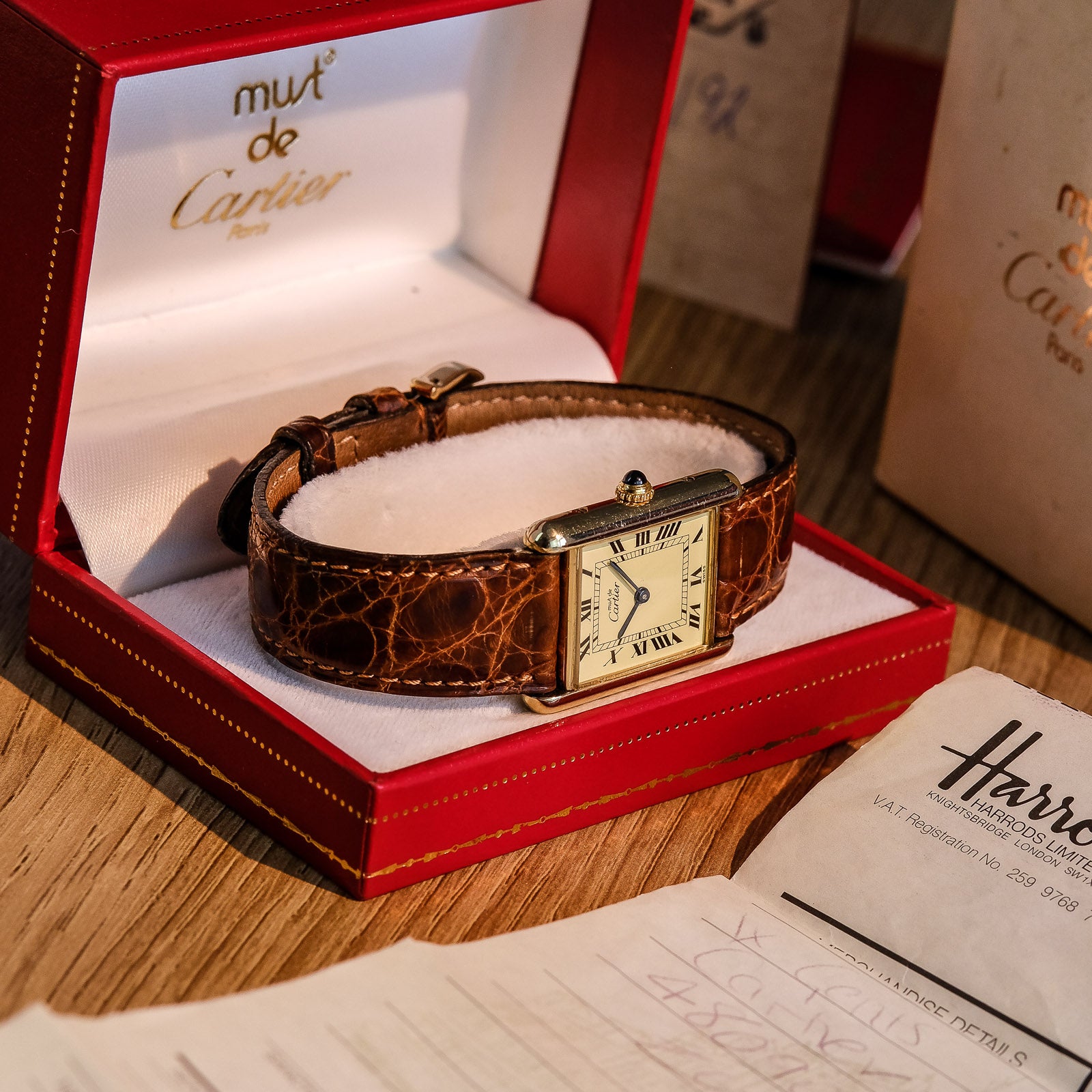Must de Cartier Tank “Lemon” Dial w/ Original Box, Papers & Booklets, Retailed by Harrods