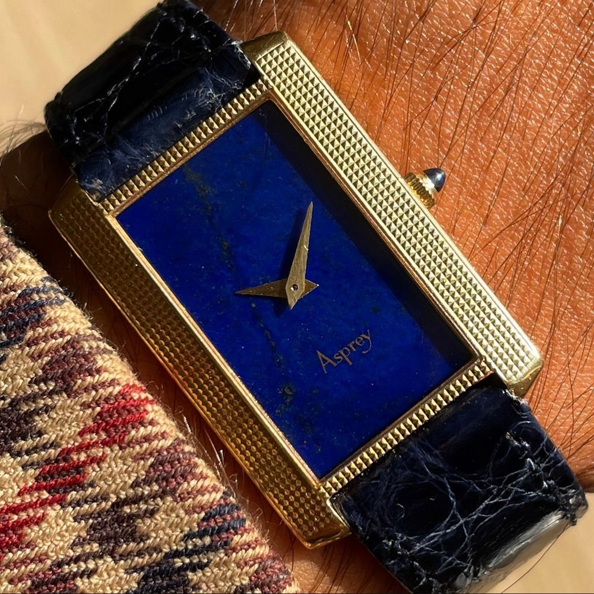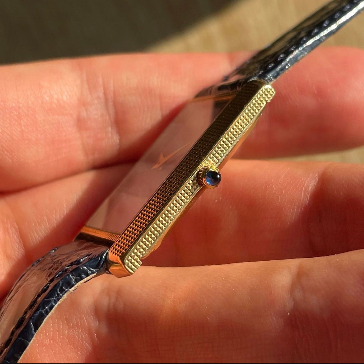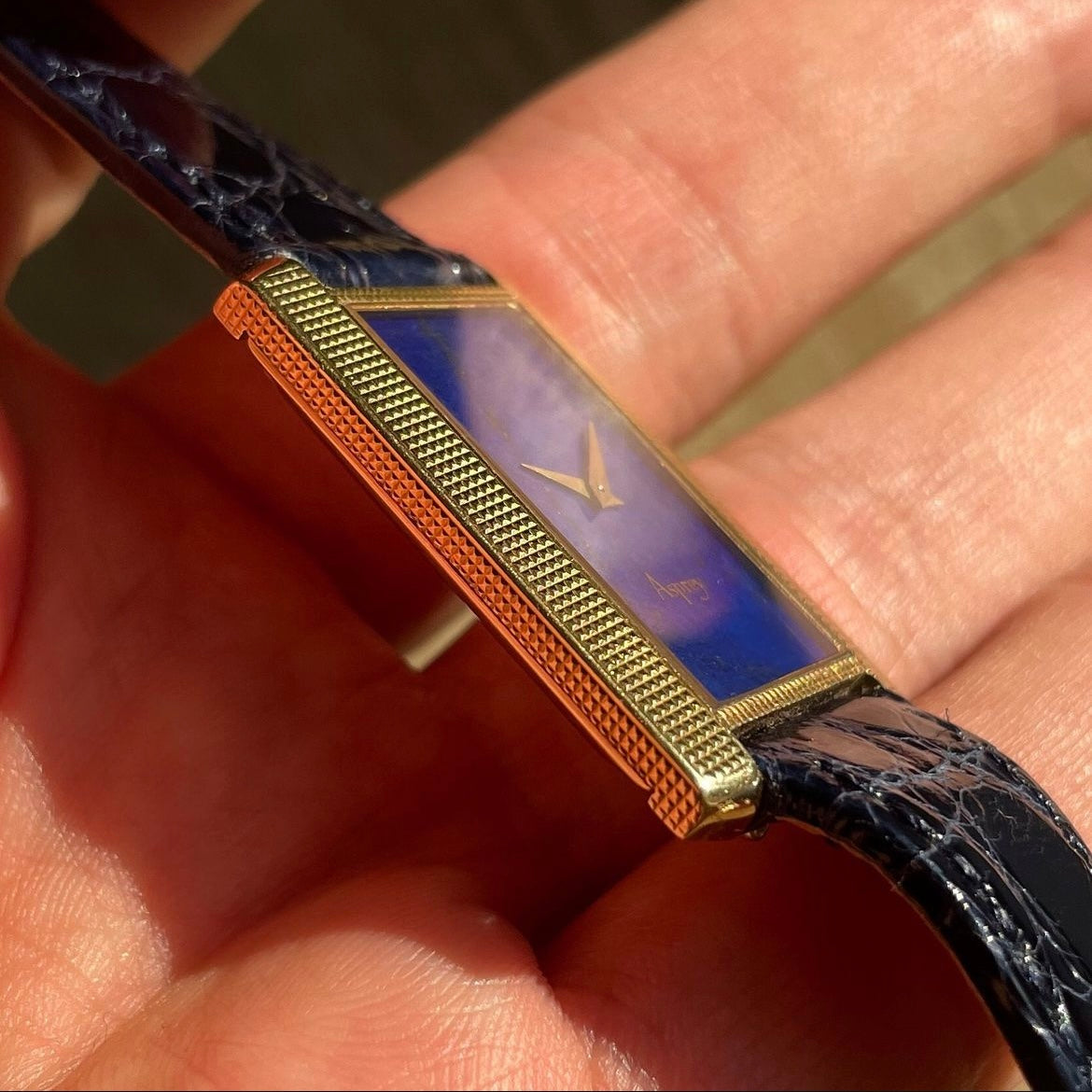 Piaget Retailed by Asprey 18k Gold Hobnail Tank 9214 w/ Lapis Lazuli Stone Dial