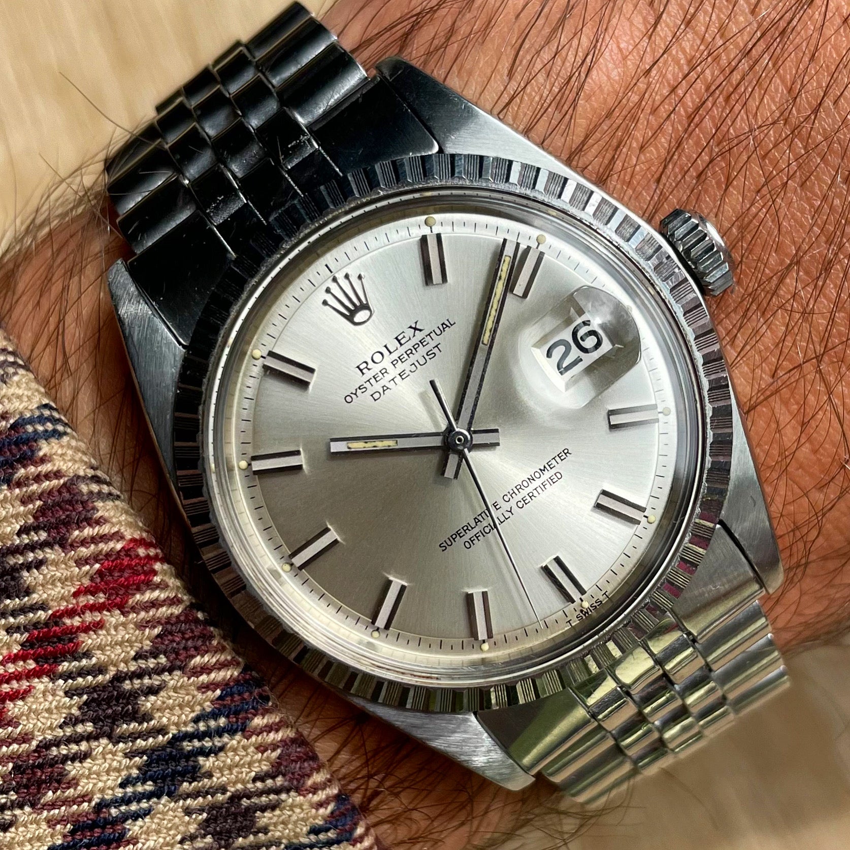 The Rolex Datejust was first introduced in 1945 and has been one of the world's most iconic and quintessential models ever since. This particular reference, the 1603, was introduced by Rolex in 1959 and was produced up until the late 1970s. The 1603 reference denotes a stainless steel Datejust with a milled steel bezel, as opposed to its counterpart, the 1601, which featured a fluted gold bezel.
