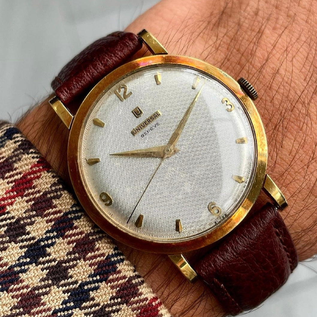 Universal Geneve 18k Gold Textured Dial Tarnished Case